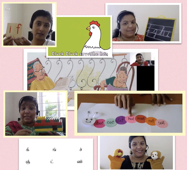 Our Kindergarten teachers conduct interactive ZOOM sessions to handle reading via Phonics, cursive writing, storytelling, Math and STEM based activities. In addition, they share creative videos after class to help reinforce concepts taught in class.